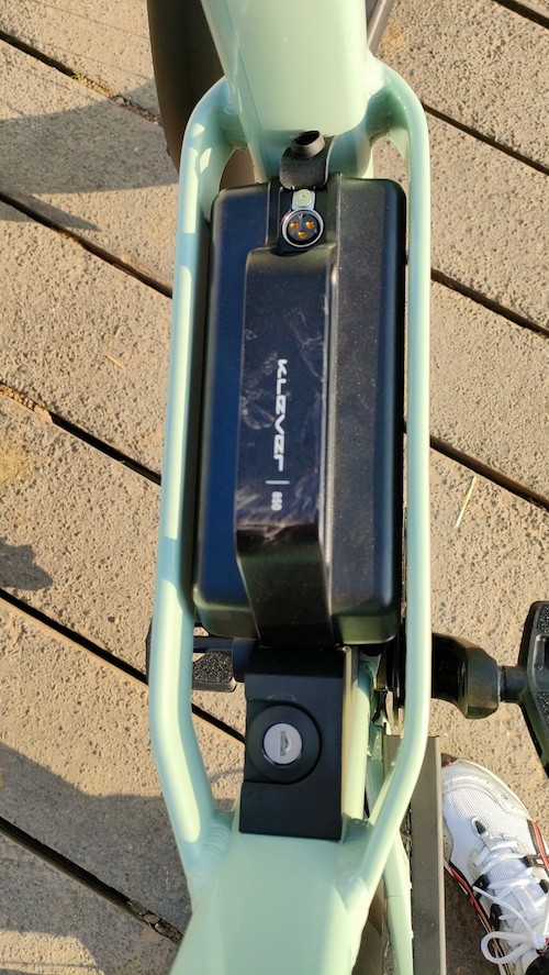 De Klever Y Muse 45 is standaard voorzien van een 850 Wh accu. Deze weegt 5.2 kg en is er gemakkelijk uit te halen door de handige hendel. Zo loop je voor de buitenwereld net als iedereen met een aktetas het kantoor binnen.